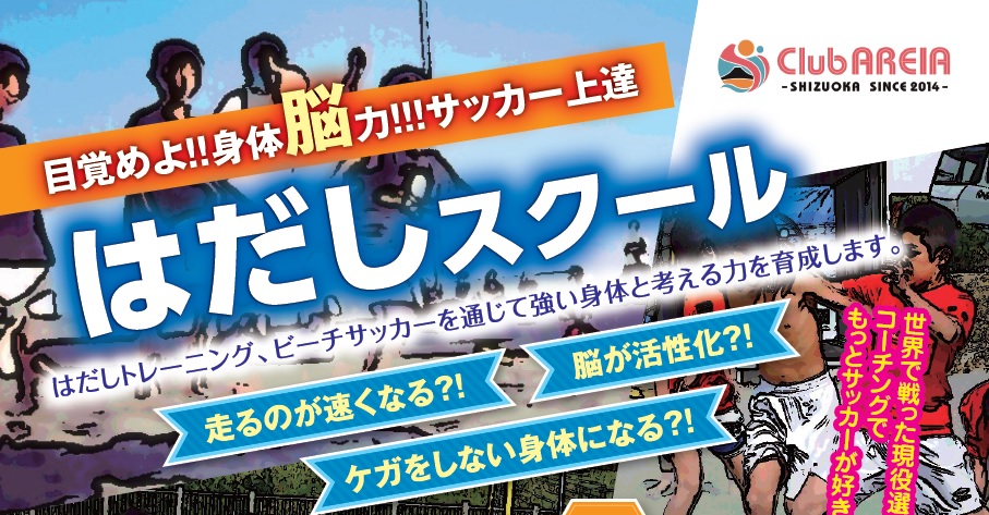 元ビーチサッカー日本代表鈴木俊多選手と一緒にビーチサッカーの楽しさを体験してもらうための「はだしスクール」を月1回磐田市で開催中!サッカー上達に活かせるビーチサッカーの情報をゲットしちゃおう!